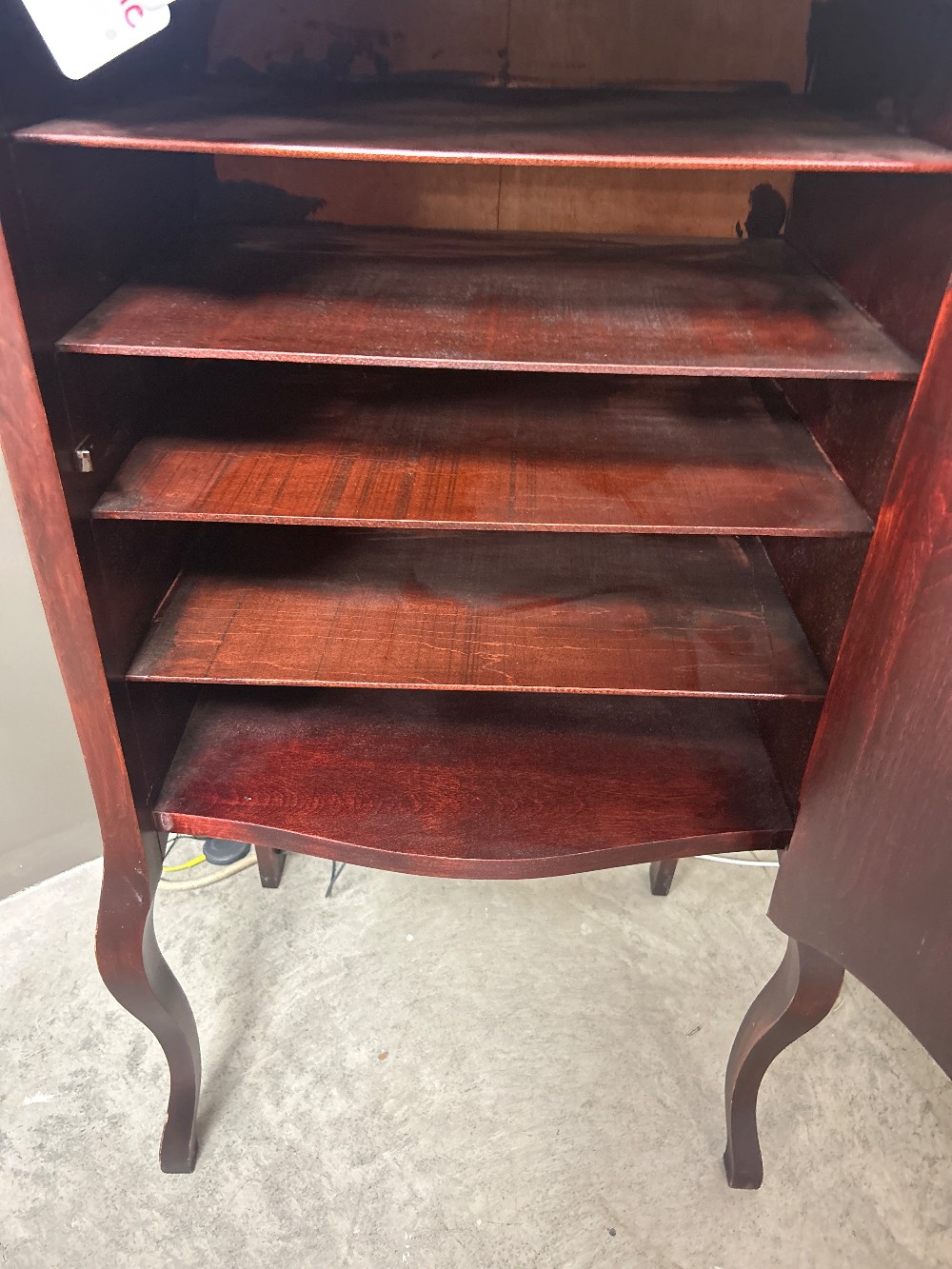 Antique Sheet music cabinet, manunfactured in Syracuse, NY. Featuring a removable mirror, drawer and shelving. Could be repurposed to use as a bathroom piece, to store craft supplies or even for teaching supplies!