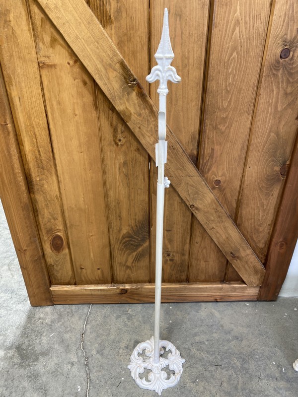 White expandable metal wreath holder.