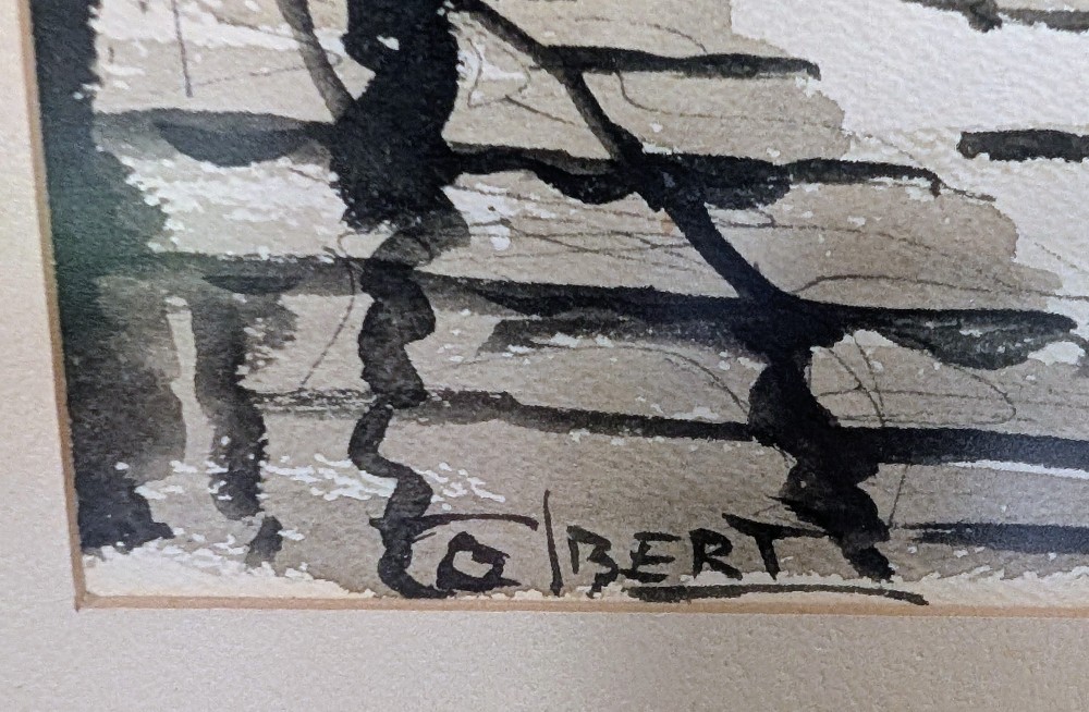 This is an original work by artist Phillip Colbert. The piece is rendered in watercolor. It depicts a city scene. It's signed COLBERT on the lower left. Rare piece of original art.