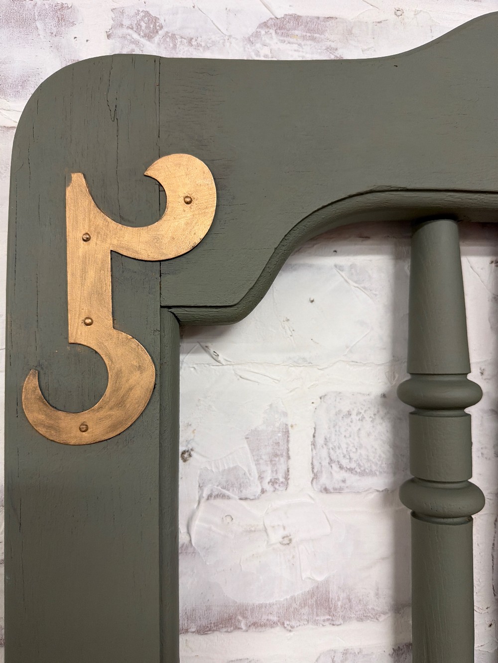 Repurposed vintage twin headboard into wall hanging and 5 hooks. Painted in Dixie Bell Thicket and seal in flat