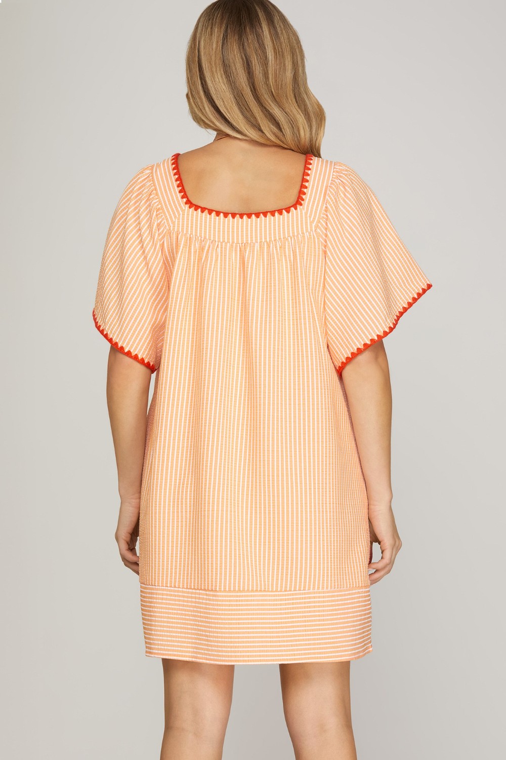This one is made to show off that spring break tan—flattering square neckline, playful stripes, and the cutest contrast stitching. The flared fit keeps it comfy and fun, plus yes… it has pockets 🙌